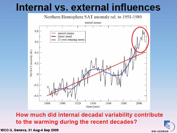 And the $64,000 question then is basically how much did internal decadal variability contribute … during the recent decades and I think the jury is still out about the relative contribution of this internal variability. However, if you just look at this diagram I think you may get the impression that some part is maybe driven by internal variability.