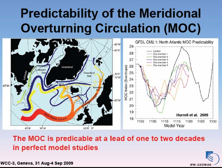 And we have conducted now for many years what you may call classical predictability studies, perfect model experiments. And here is just one example from a white paper of Jim Hurrell which will be published soon, where you see that the strength of the Meridional Overturning Circulation may be predictable, provided you have suitable initial conditions; you can initialize your climate model.