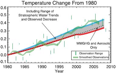 Next up is the February 2010 Science article from Solomon et al, Contributions of Stratospheric Water Vapor to Decadal Changes in the Rate of Global Warming. Michaels and Knappenberger gleefully quote the opening paragraph: