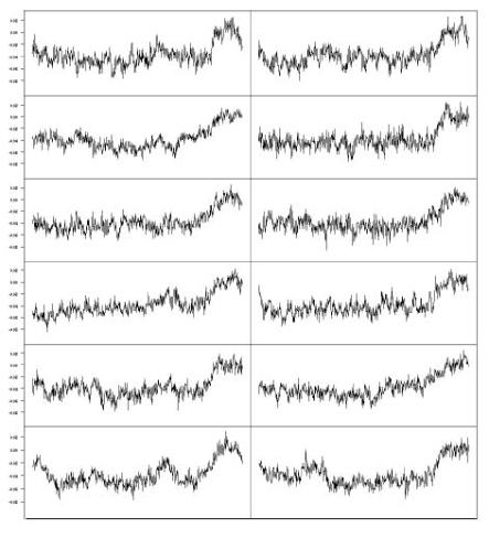 Figure 4.4: One of the most compelling illustrations that McIntyre and McKitrick have produced is created by feeding red noise [AR(1) with parameter = 0.2] into the MBH algorithm. The AR(1) process is a stationary process meaning that it should not exhibit any long-term trend. The MBH98 algorithm found ‘hockey stick’ trend in each of the independent replications.