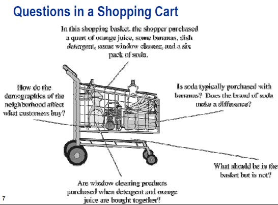 Where should detergents be placed in the store in order to maximize their sales? Are window cleaning products purchased when detergents and orange juice are bought together? Is soda purchased with bananas? Does the brand of the soda make a difference? How are the demographics of the neighborhood affecting what customers are buying?