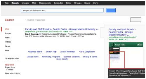 Meanwhile, interesting changes are also afoot at George Mason University. It seems that barely over a week ago, Yasmin Said disappeared completely from the GMU online ‘People Finder” directory, as well as the full GMU directory. Her erstwhile post as Research Assistant Professor in GMU’s School of Physics, Astronomy and Computational Sciences could be seen in the Google cache from June (but even that is gone now).
