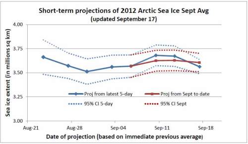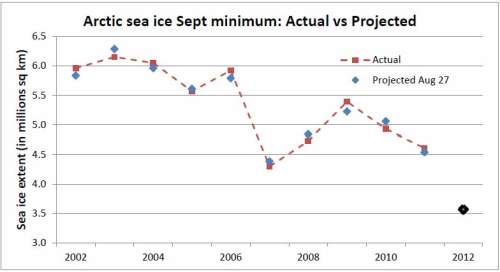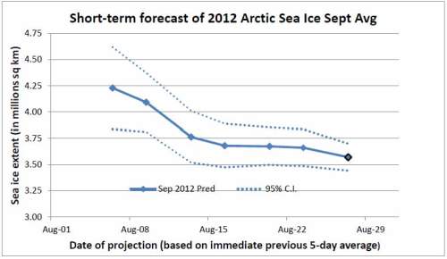 This gives a September 2012 projection of 3.56 +/- 0.13 million km (as seen in the lower right hand corner), down slightly from the previous week. Here is the whole series to date.